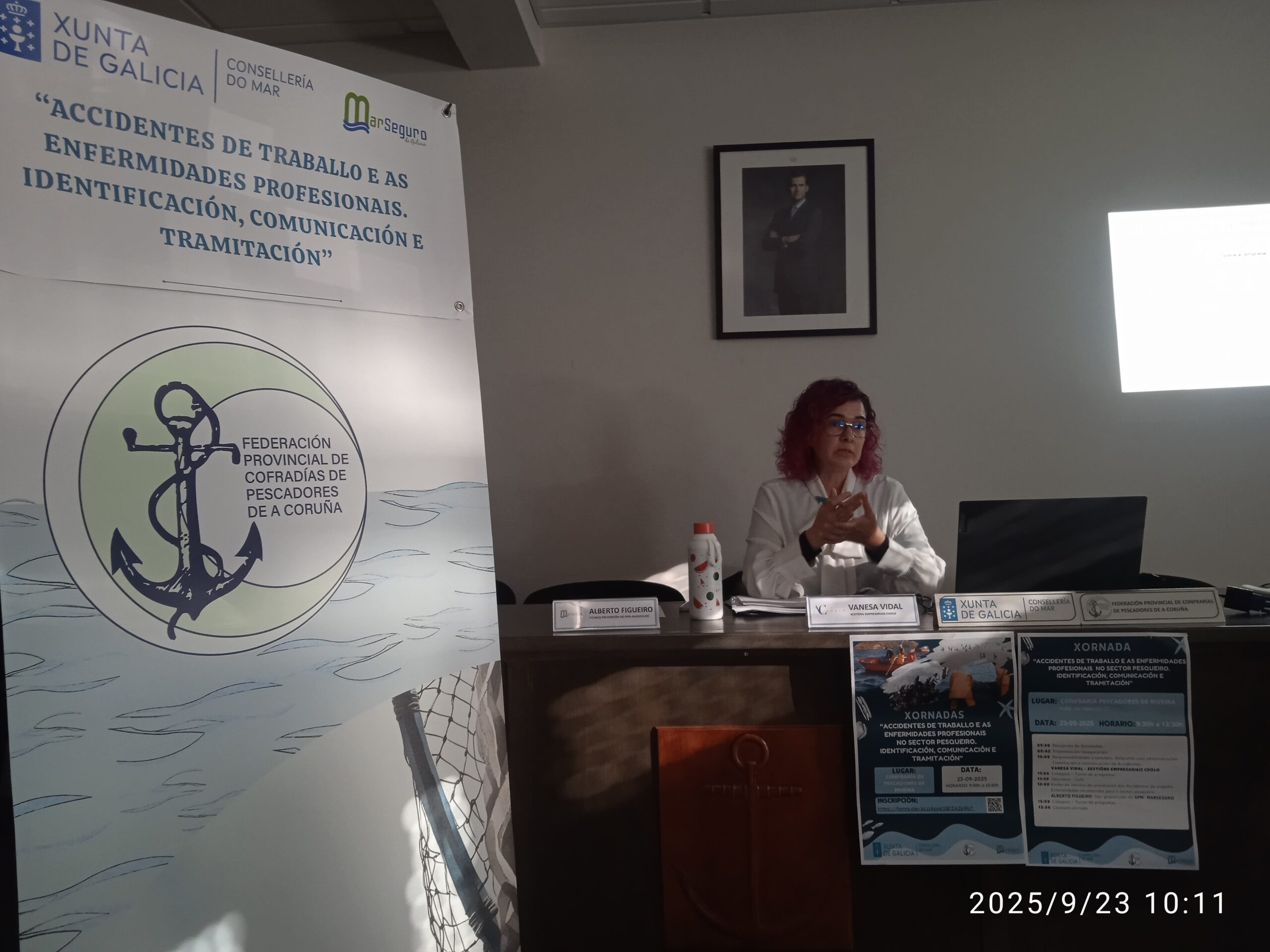 Nuestra cooperación se concretó en la charla informativa ofrecida por nuestra especialista en estos temas, doña Vanessa Vidal Pita, en la sede de la Cofradía de Pescadores de Riveira, en A Coruña, el día 23 de septiembre de 2025