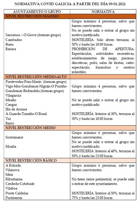 A partir del día 9 de enero de 2021 se han realizado cambios en las restricciones establecidas a diversos ayuntamientos de Galicia.